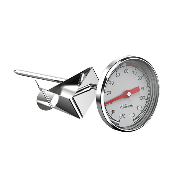 Keep a better eye on your milk foam with the Sunbeam milk thermometer. Meant to fit most milk jugs, this indispensable tool helps you create consistently good foam for your cappuccino and flat whites.